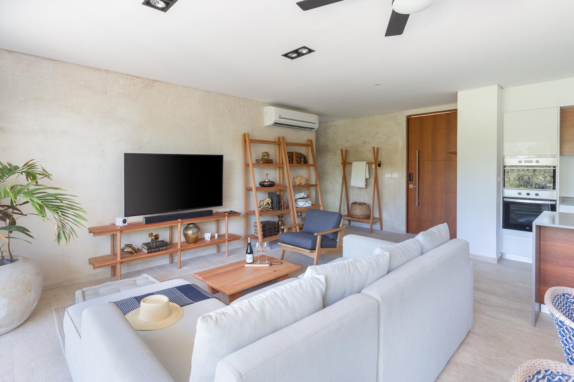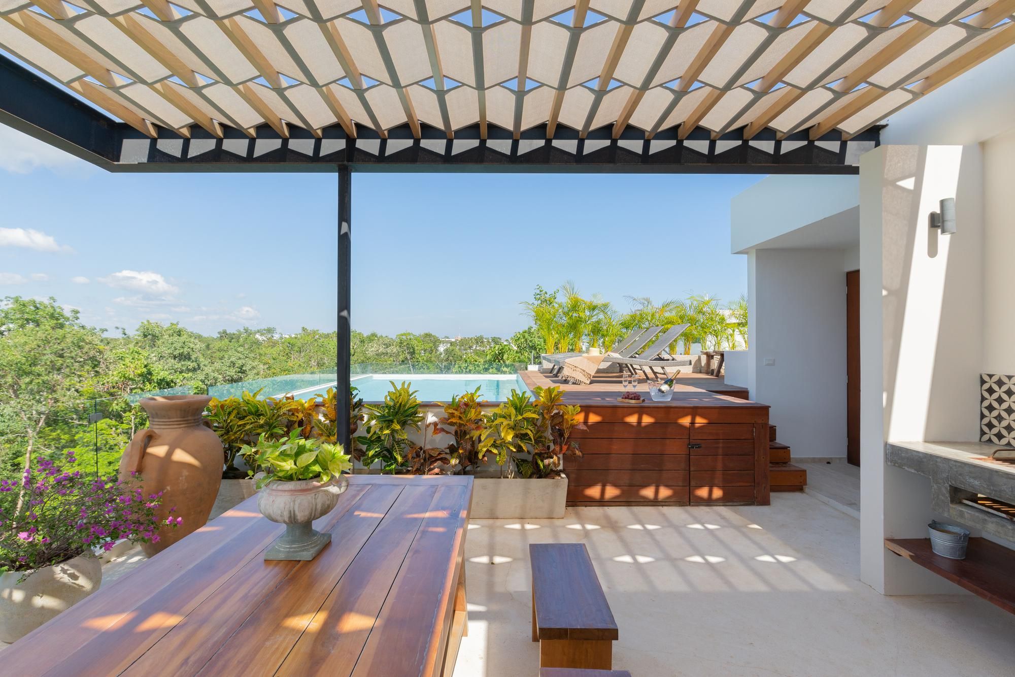 This stylish penthouse has it all – just a short drive from Tulum and its idyllic beaches. Inside, you’ll find yourself immersed in comfort and elegant, minimalist décor. And if that wasn’t enough, you’ll also have your own terrace with a private swimming pool, as well as access to shared facilities, including an additional pool, a gym, a Pilates studio and a beach club.