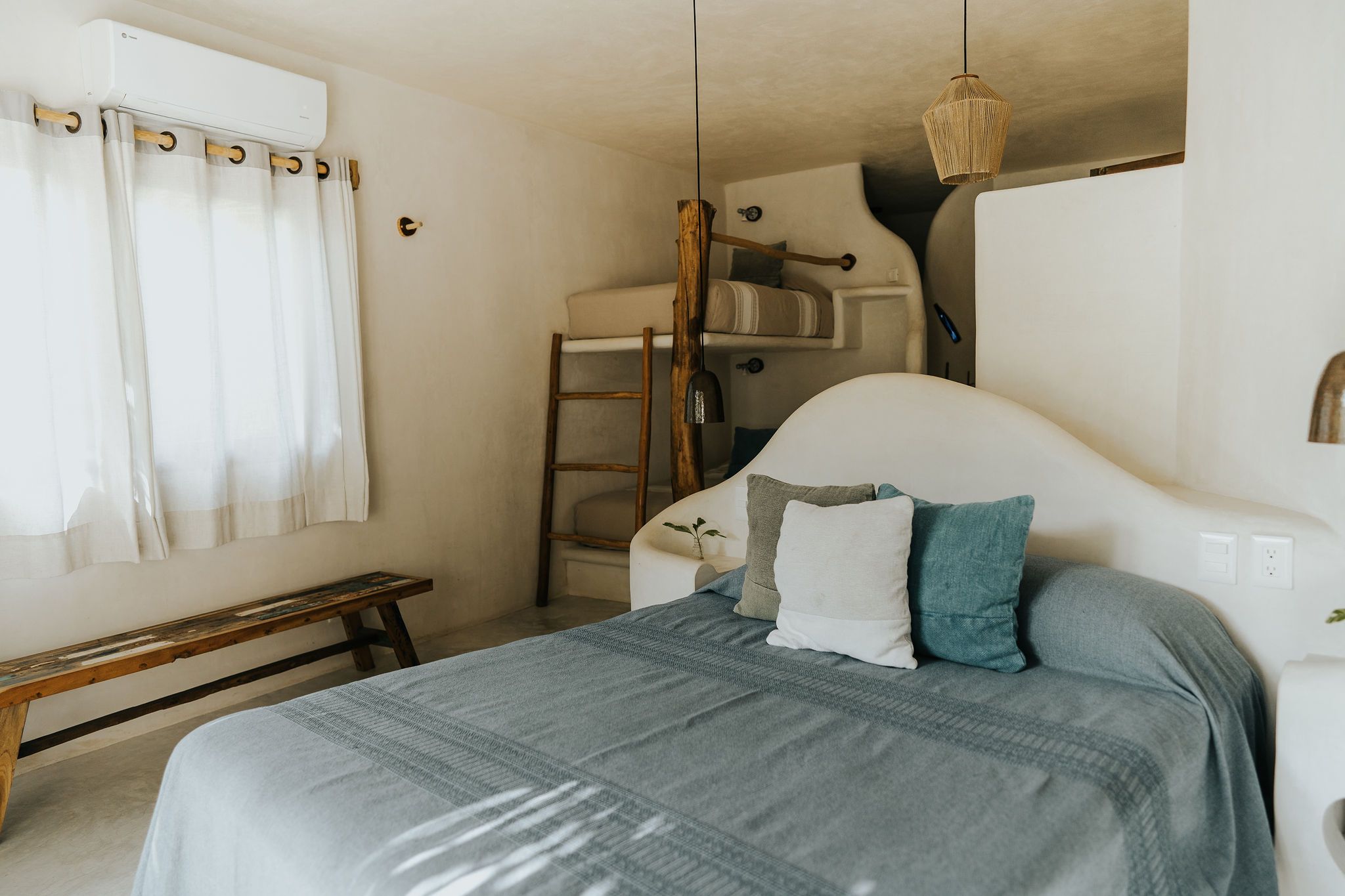 This luxurious villa is nestled within the tree canopies on a boutique beach resort in Tulum. The interiors have a laid-back and luxurious feel, and there's plenty of communal space. Designed with entertaining and socialising in mind – the villa can comfortably accommodate a group of eight. Due to the beachside location, you'll likely spend most of your days soaking up the sun. Outside you'll find a private swimming pool, beach access, a roof terrace, and patio area. Benefiting from its luxury resort location, you can make use of the onsite taco bar, breakfast shack, and private chef services.