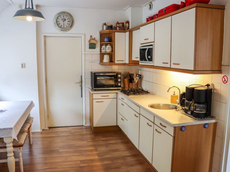 "Onder De Eiken", 6-room semi-detached house 190 m2 on 2 levels. Comfortable furnishings: entrance hall with separate WC. Living room with cable TV, hi-fi system and DVD collection available. Exit to the terrace. 1 double bedroom with 2 beds and TV. Kitchen (oven, dishwasher, Gas stove, toaster, kettle, microwave, electric coffee machine) with dining table.