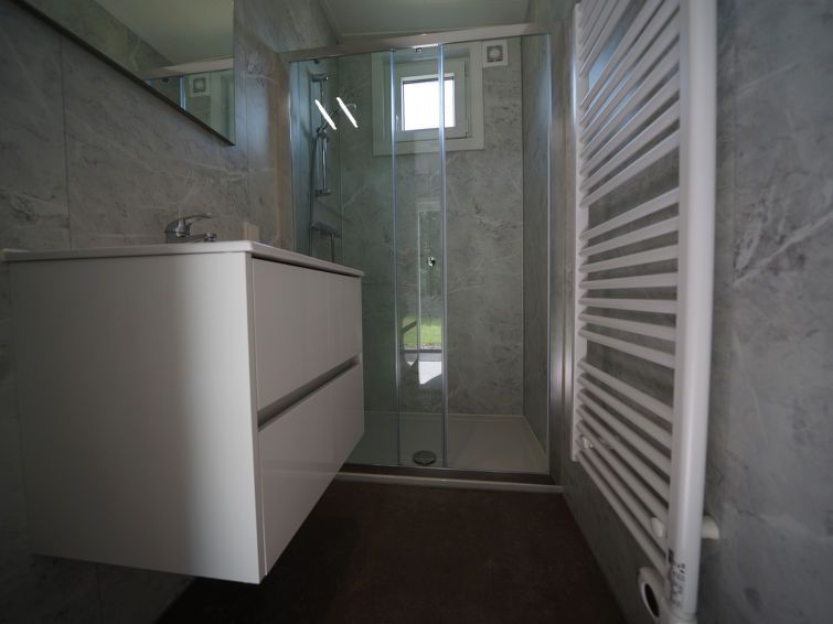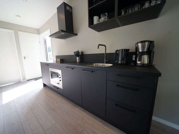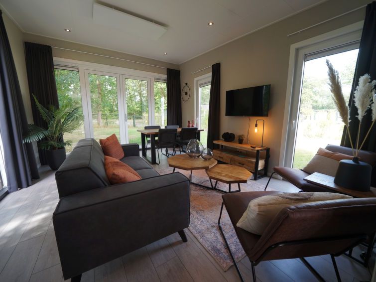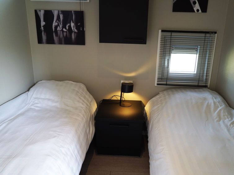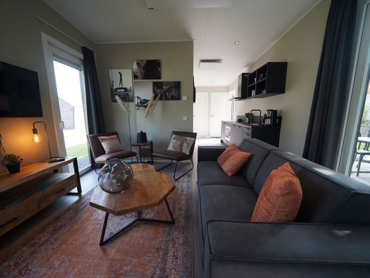 "Just Nature Light 4", 3-room bungalow 49 m2. Stylish and cosy furnishings: living/dining room with panoramic window with dining table and TV. Exit to the terrace. 2 rooms, each room with 2 beds. Open kitchen (4 hot plates, dishwasher, electric coffee machine, combination microwave).
