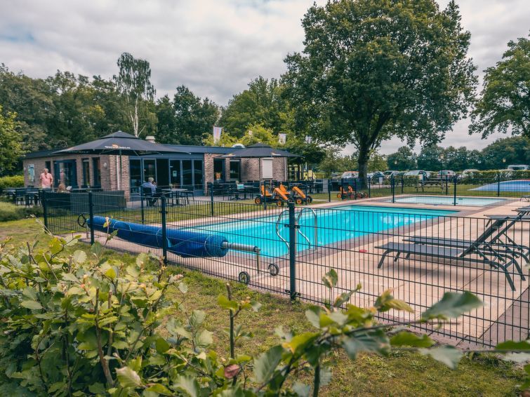 "Velthorst 4", 3-room mobile home 50 m2. Practical and modern furnishings: living/dining room with dining table and TV. 2 rooms, each room with 2 beds. Open kitchen (2 hot plates, dishwasher, kettle, electric coffee machine, combination microwave). Shower/WC. Electric heating. Terrace, small garden.