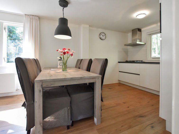 On a beautiful location in the forest, fresh and modernized holiday home with all amenities; the only thing that surprised us was that the extractor (above the stove) blew the extracted air back into the (living) space (with the left burners almost being blown out). No idea if that's allowed, but would like to consider making a drain outside.