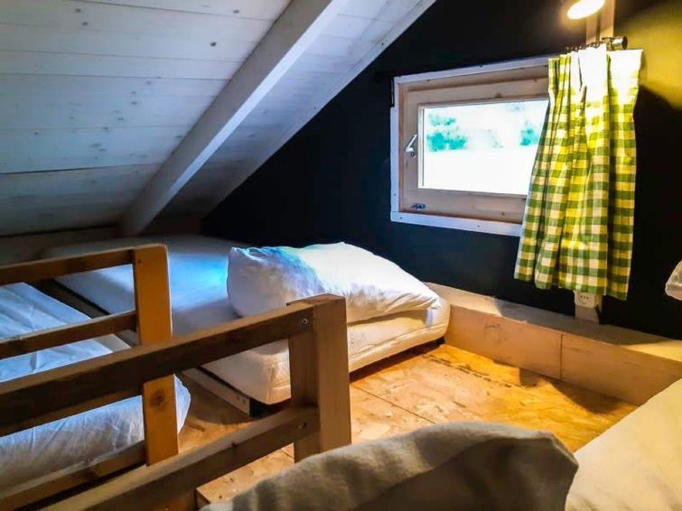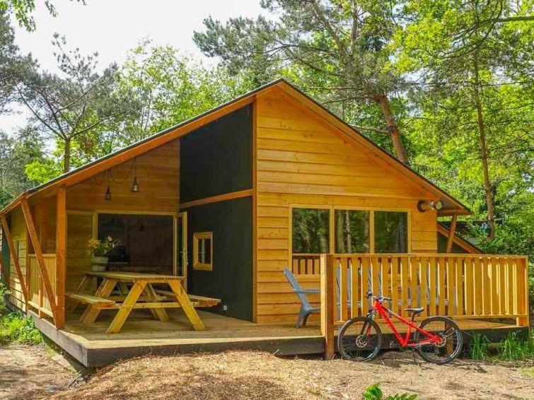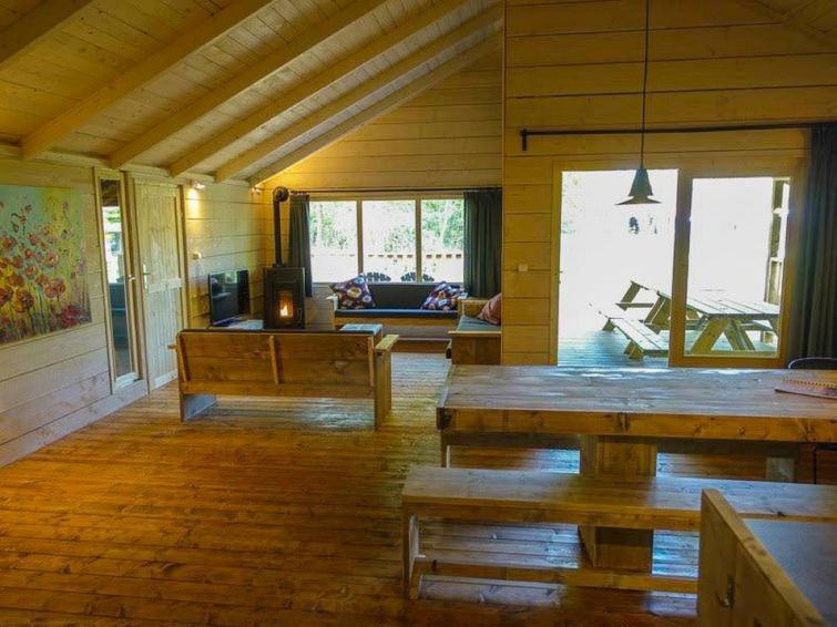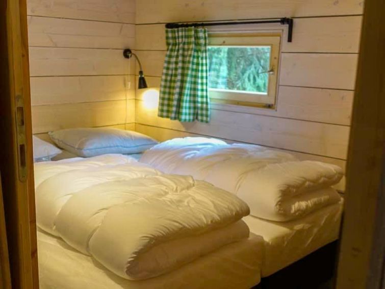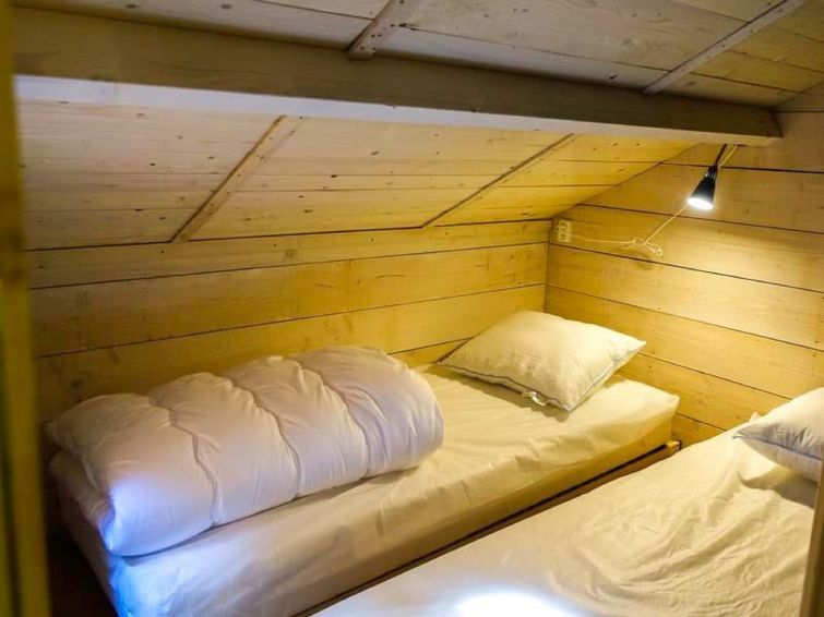 "Glamping family lodge 10", 6-room mobile home on 2 levels. Bright, comfortable and cosy furnishings: living/dining room with 1 sofabed, dining table and flat screen. Exit to the terrace. 1 room with 1 x 2 bunk beds. 1 room with 1 x 2 bunk beds. 1 room with 1 double bed. 1 room with 1 double bed.