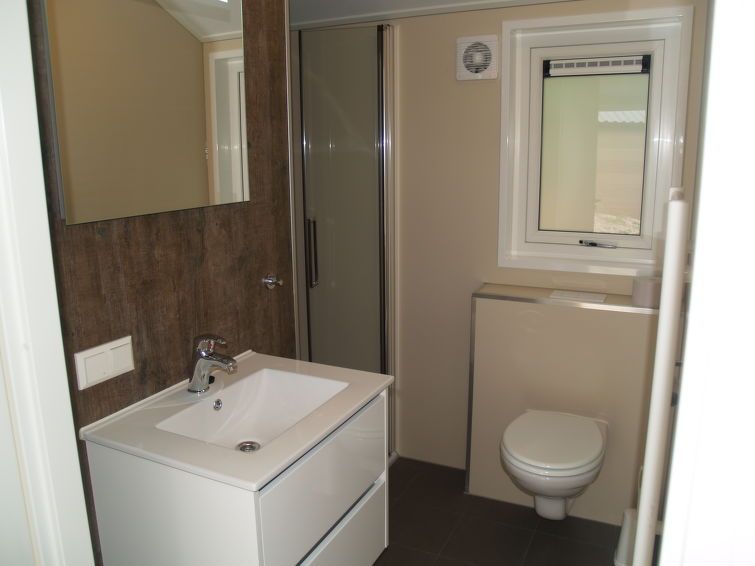 "Velthorst 4", 3-room chalet 70 m2, on the ground floor. Bright, practical and stylish furnishings: living/dining room with 1 sofabed, dining table and flat screen. Exit to the terrace. 1 room with 1 double bed. 1 room with 2 beds. Open kitchen (oven, dishwasher, 1 induction hot plates, microwave, electric coffee machine) with dining table and dining nook.