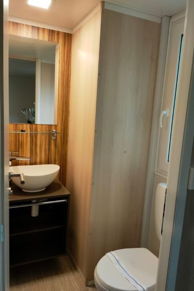 We stayed in a great chalet. Very modern, nothing was missing. Small footbridges to the pond were the highlight. We would book again anytime.