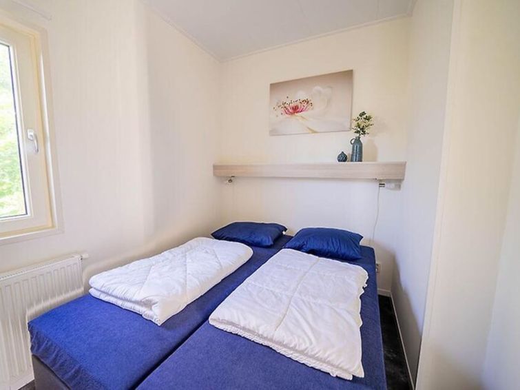 "Pavilion 4", 3-room chalet 50 m2. Comfortable furnishings: living/dining room with dining table and flat screen. Exit to the terrace. 2 double bedrooms, each room with 2 beds. Open kitchen (4 hot plates, dishwasher, electric coffee machine, combination microwave). Shower/WC. Heating.