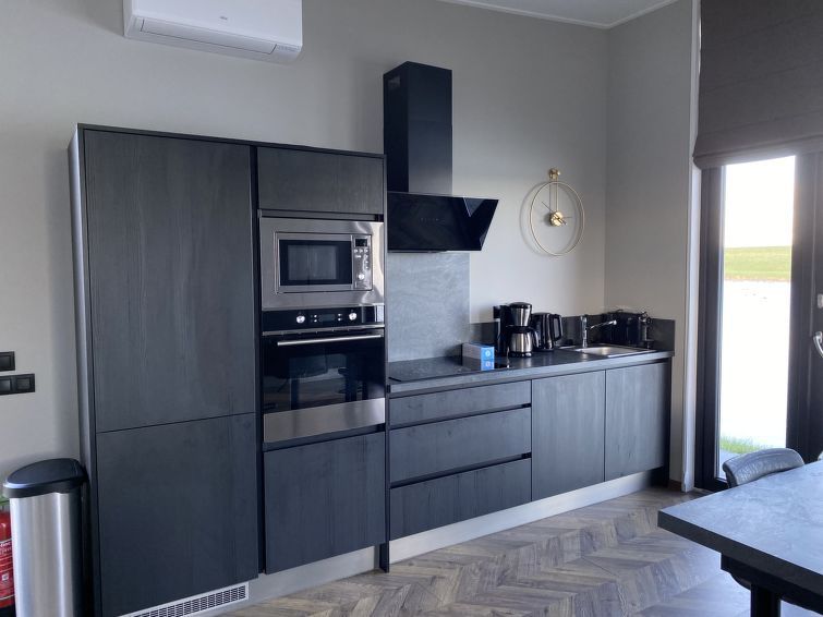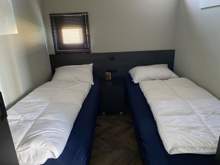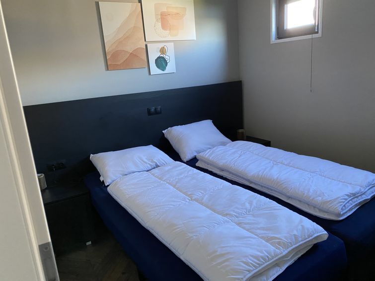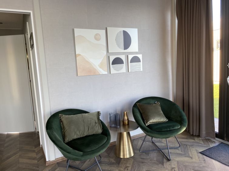 "Just Nature 6", 4-room chalet 70 m2, on the ground floor. Bright, comfortable and tasteful furnishings: living/dining room with 1 sofabed and flat screen. Exit to the terrace. 1 room with 1 double bed. 1 room with 2 beds. 1 room with 2 beds. Open kitchen (oven, dishwasher, 1 induction hot plates, microwave, electric coffee machine) with dining table and dining nook.