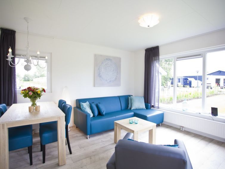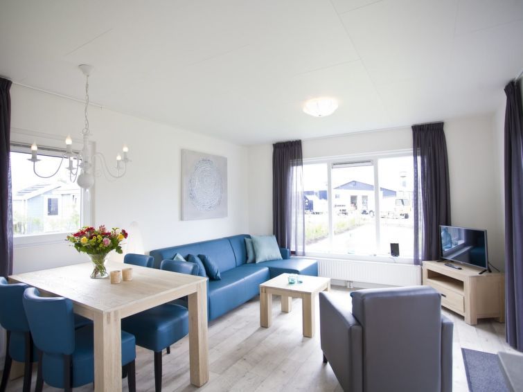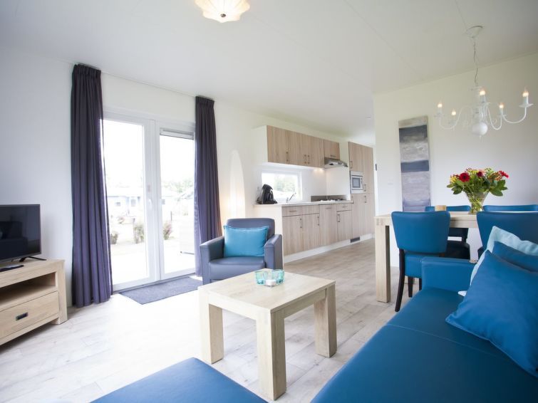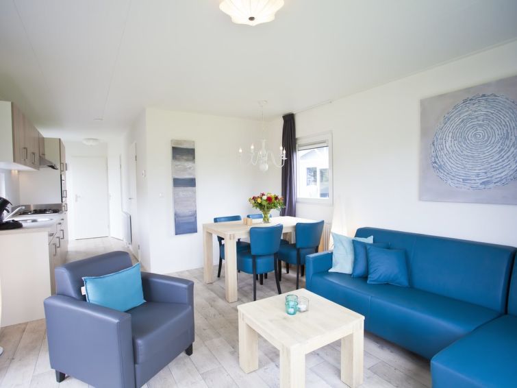 "Unique 4", 3-room bungalow 40 m2. Cosy furnishings: living/dining room with dining table and TV. Exit to the terrace. 2 rooms, each room with 2 beds. Open kitchen (dishwasher, 4 gas rings, kettle, freezer, electric coffee machine, combination microwave). Shower/WC. Heating. Terrace.