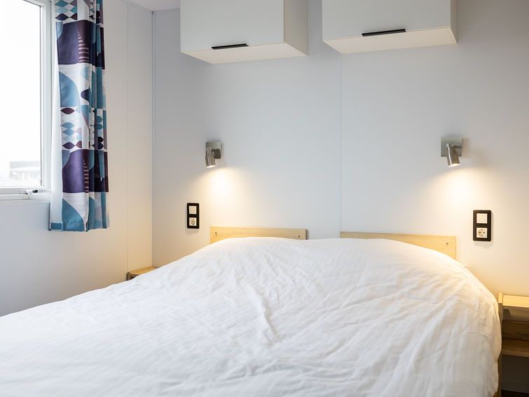 "4-persoons Grytsje", 3-room mobile home 27 m2. Comfortable furnishings: living/dining room with dining table and flat screen. Exit to the terrace. 1 room with 2 beds. 1 room with 1 double bed. Open kitchen (4 hot plates, dishwasher, kettle, microwave, electric coffee machine). Shower, sep.
