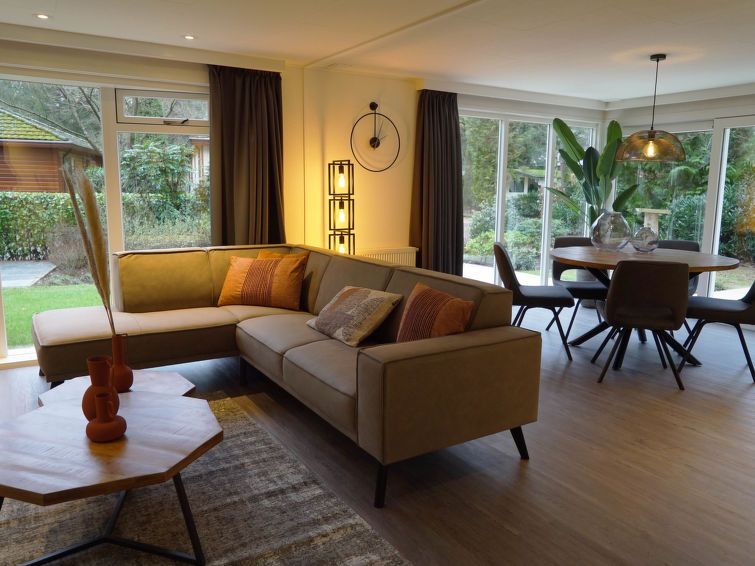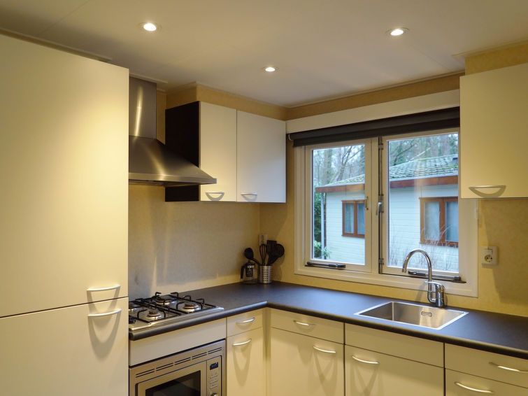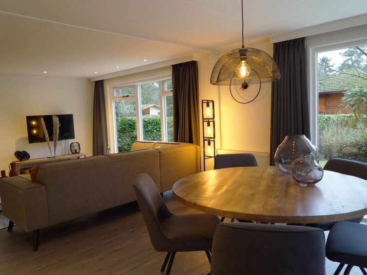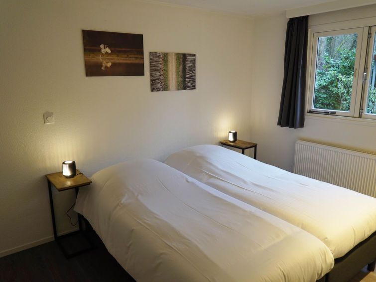 "Carre 4", 3-room bungalow. Cosy furnishings: living/dining room with TV. Exit to the terrace. 2 rooms, each room with 2 beds (80 cm, length 200 cm). Open kitchen (Gas stove, 4 gas rings, kettle, electric coffee machine, combination microwave). Shower/WC. Electric heating. Terrace.