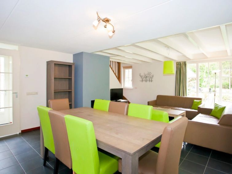 "Villa Sauna 10", 6-room house on 2 levels. Cosy furnishings: living/dining room with TV. Exit to the terrace. 1 room with 1 x 2 bunk beds (70 cm, length 190 cm). Open kitchen (dishwasher, Gas stove, 4 gas rings, kettle, freezer, electric coffee machine, combination microwave). Sep.