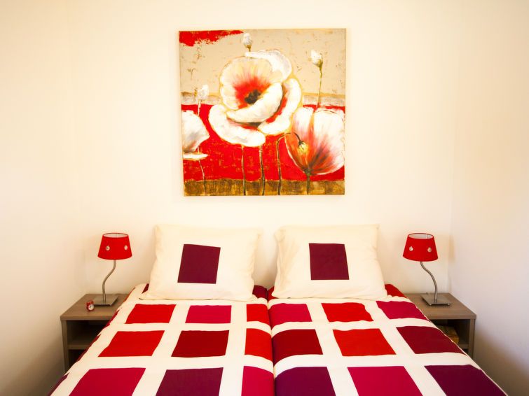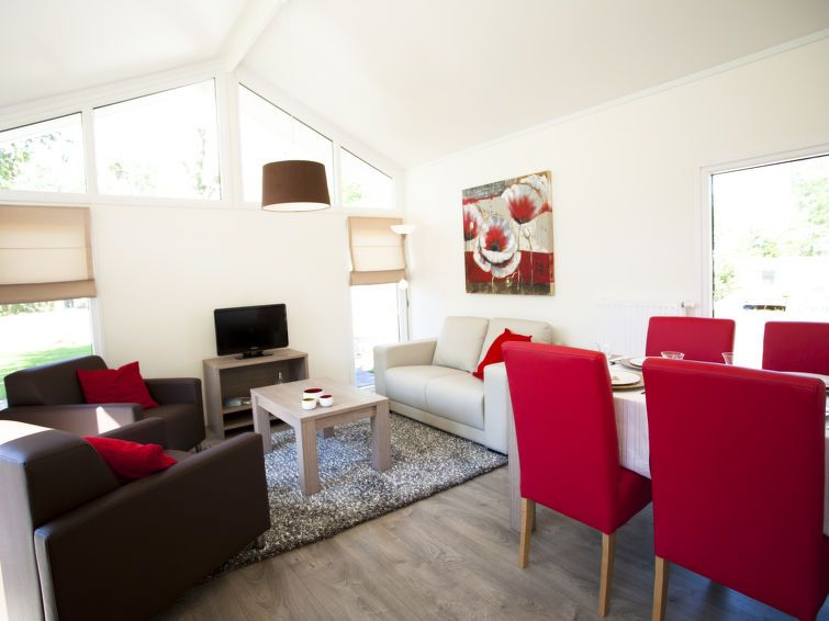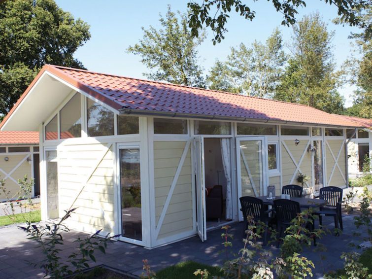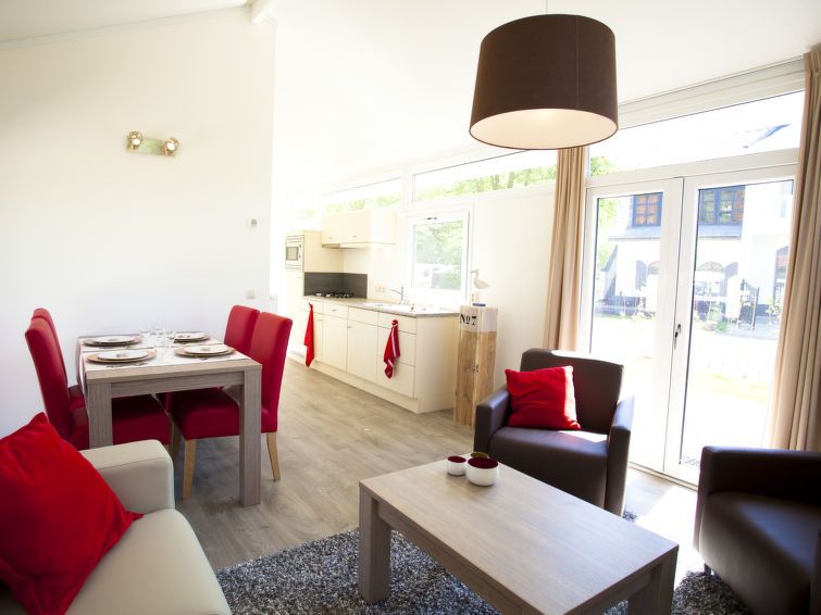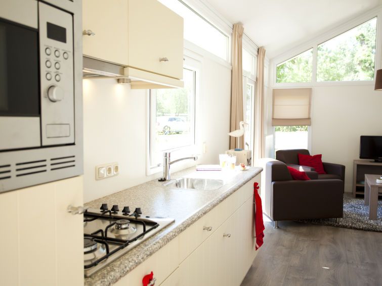 "Cabana 4", 3-room house. Bright, comfortable and tasteful furnishings: living/dining room with dining table and TV. Exit to the terrace. 2 rooms, each room with 2 beds. Open kitchen (dishwasher, 4 gas rings, kettle, electric coffee machine, Capsules for coffee machine (Senseo) extra, combination microwave).