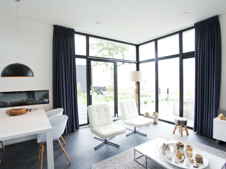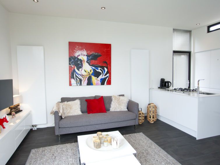 "Cube Exclusif Waterfront 4", 3-room bungalow. Bright, very comfortable and stylish furnishings: living/dining room with dining table and TV. Exit to the terrace. 2 rooms, each room with 2 sleeping facilities. Open kitchen (4 hot plates, dishwasher, kettle, freezer, electric coffee machine, combination microwave).