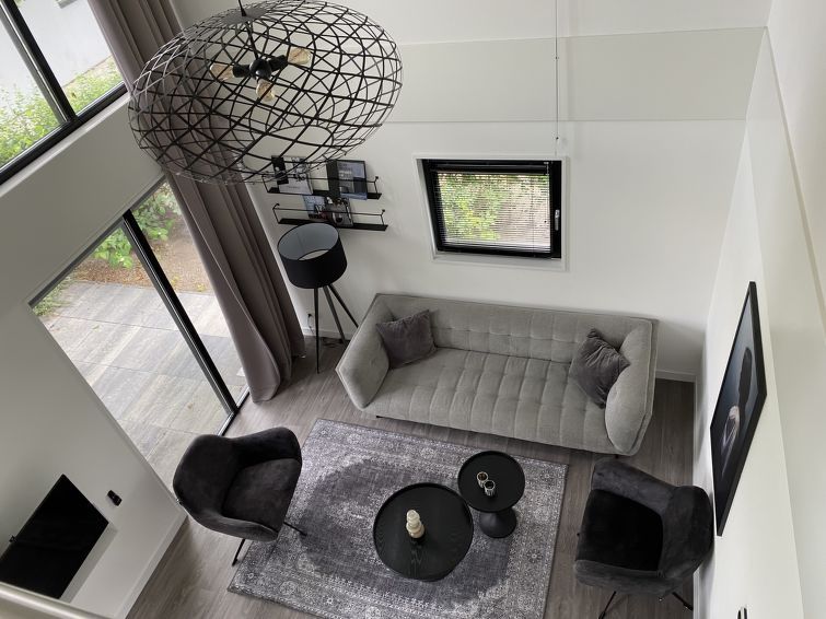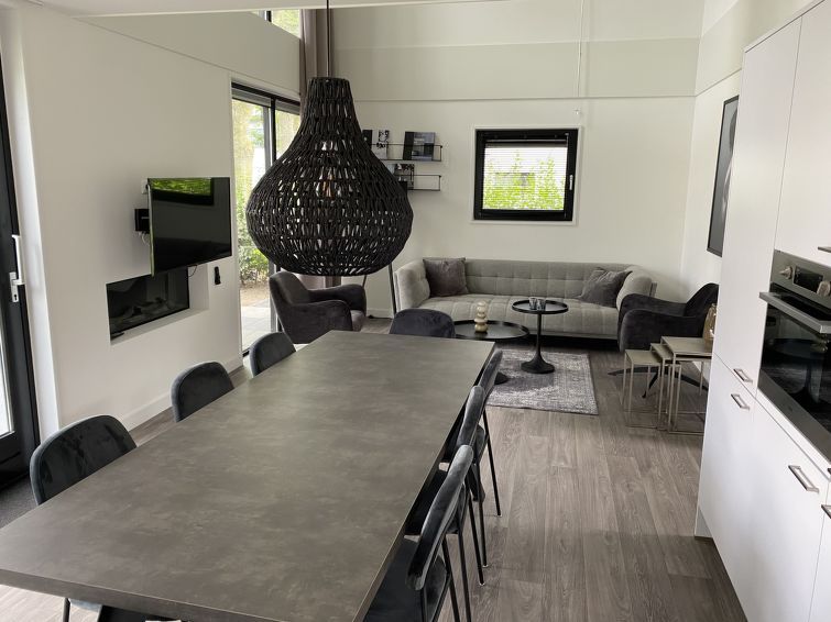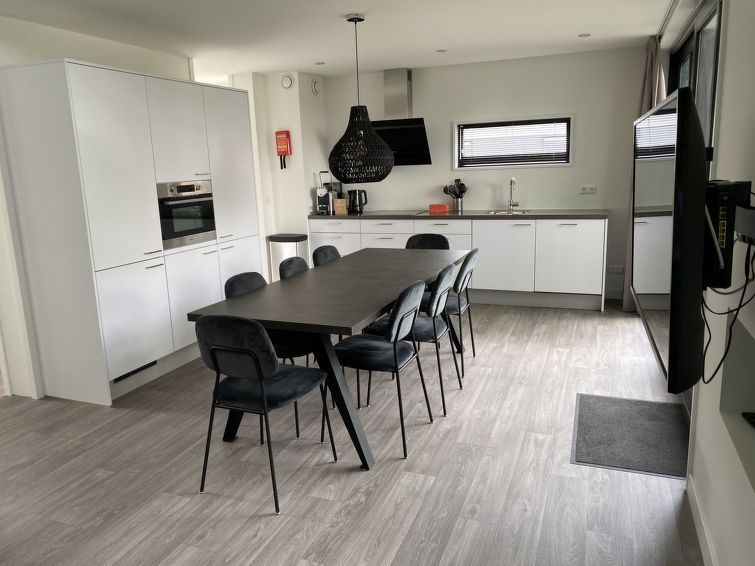 "Cube Magnifique 8", 5-room house on 2 levels. Very comfortable and stylish furnishings: living/dining room with dining table and TV. Exit to the terrace. Open kitchen (4 hot plates, dishwasher, kettle, freezer, electric coffee machine, Capsules for coffee machine (Senseo) extra, combination microwave).