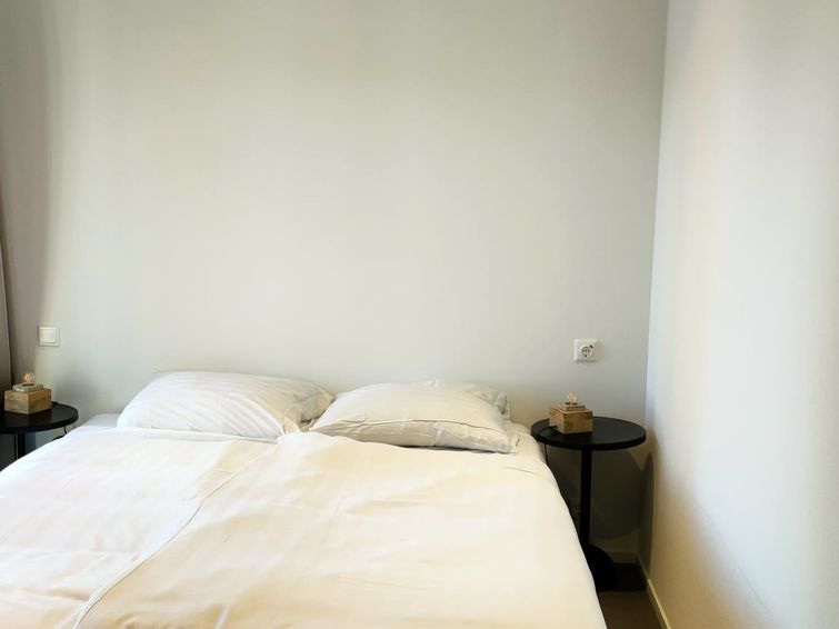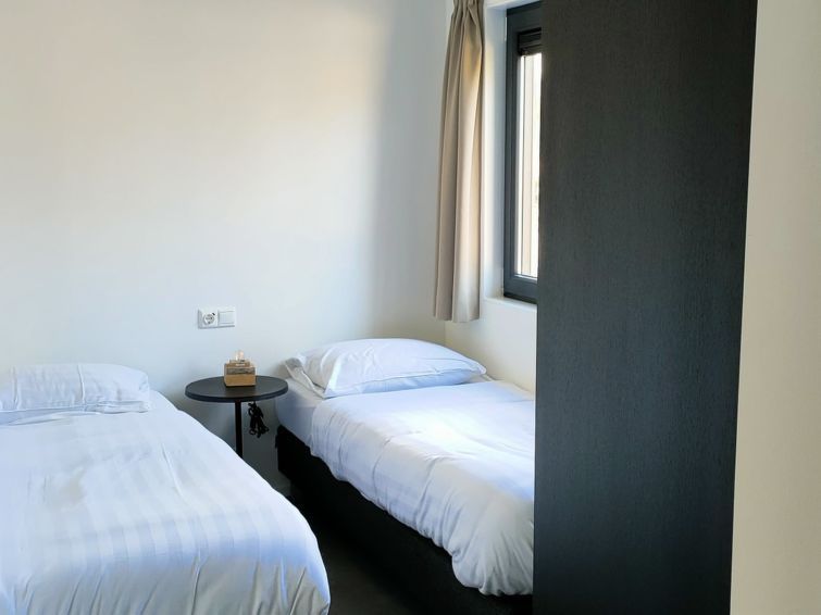 "L-Cube 6", 4-room bungalow. Bright, comfortable and stylish furnishings: living/dining room with dining table and TV. Exit to the terrace. 2 rooms, each room with 2 beds. 1 room with 1 x 2 bunk beds. Open kitchen (4 hot plates, dishwasher, kettle, electric coffee machine, combination microwave).