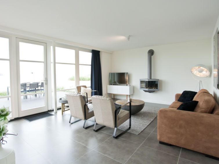 "Strandvilla 6", 4-room house on 2 levels. Spacious and bright, tasteful and cosy furnishings: large living/dining room with Scandinavian wood stove, dining table and TV. Exit to the terrace. Open kitchen (dishwasher, 4 induction hot plates, kettle, electric coffee machine, Capsules for coffee machine (Senseo) extra, combination microwave).