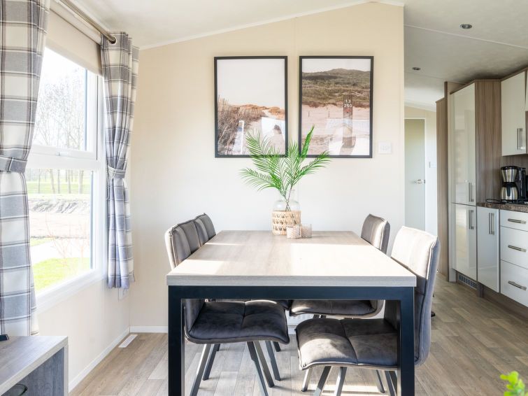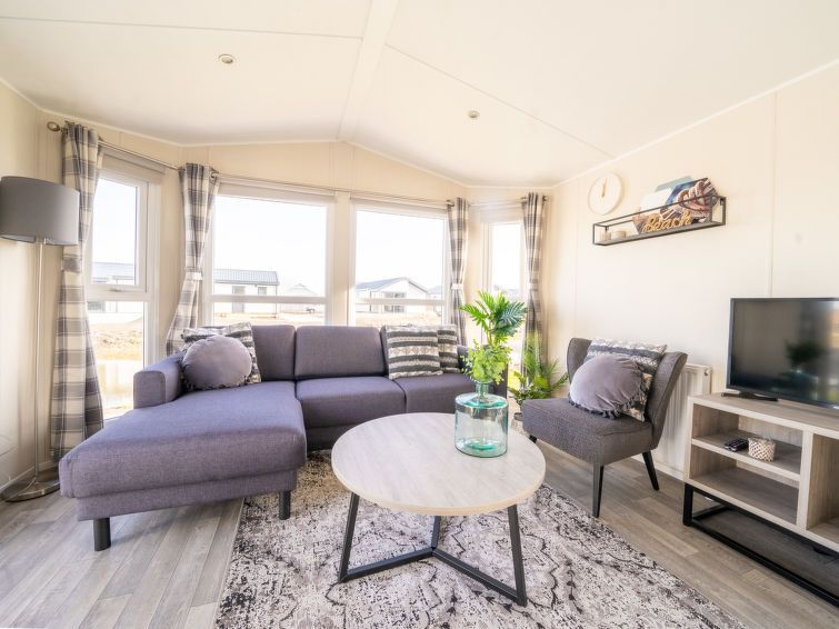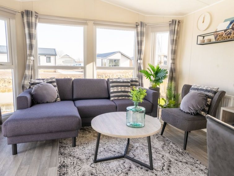 "Berkel 4", 3-room chalet 52 m2, on the ground floor. Bright, modern and tasteful furnishings: living/dining room with 1 sofabed, dining table and flat screen. Exit to the terrace. 1 room with 2 beds. 1 room with 2 beds. Open kitchen (dishwasher, 4 gas rings, microwave, electric coffee machine) with dining table and dining nook.