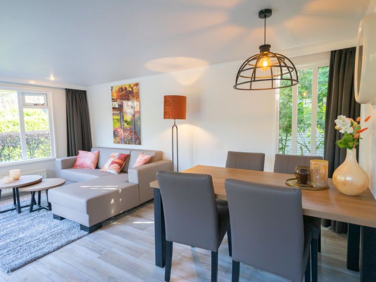"Hackfort 4", 3-room bungalow 70 m2. Comfortable and tasteful furnishings: living/dining room with dining table and TV. Exit to the terrace. 1 room with 2 beds. 1 room with 2 sleeping facilities. Open kitchen (4 hot plates, kettle, freezer, electric coffee machine). Shower/WC. Heating.