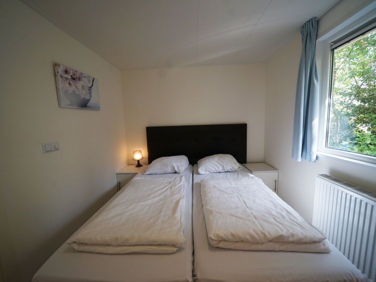 "L'Avenir 6", 4-room bungalow 65 m2. Tasteful furnishings: living/dining room with dining table and TV. Exit to the terrace. 3 rooms, each room with 2 beds. Open kitchen (dishwasher, 4 gas rings, kettle, freezer, electric coffee machine, combination microwave). Shower/WC. Heating.