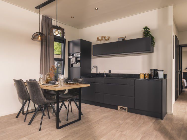 "Villa Maritiem aan het water", 3-room house 55 m2. Comfortable furnishings: entrance hall. Living/dining room with dining table and flat screen. Exit to the terrace. 2 double bedrooms, each room with 2 beds and flat screen. Open kitchen (4 hot plates, dishwasher, kettle, electric coffee machine, Capsules for coffee machine (Nespresso) extra, combination microwave).