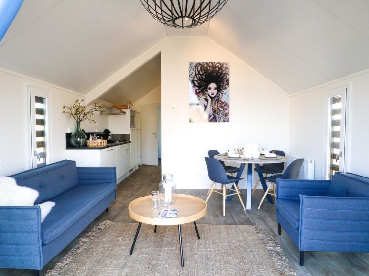 "Beach House 4", 3-room bungalow. Beautiful and cosy furnishings: living/dining room with dining table and TV. Exit to the terrace. 2 rooms, each room with 2 beds. Kitchenette (dishwasher, Gas stove, kettle, electric coffee machine, combination microwave). Shower/WC. Heating. Terrace, small garden.