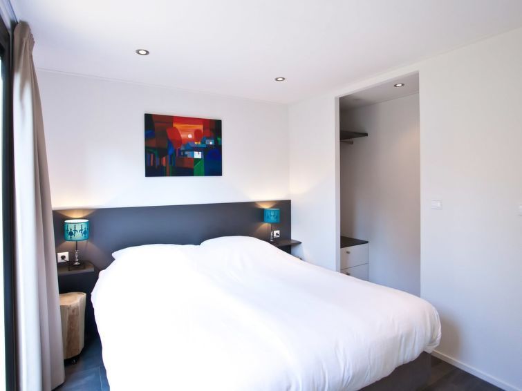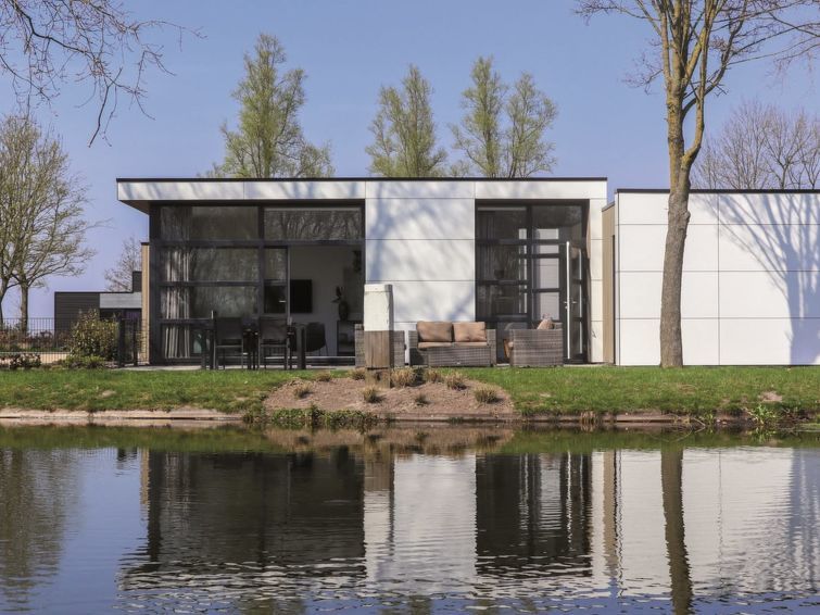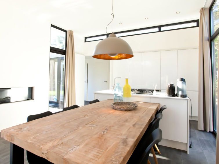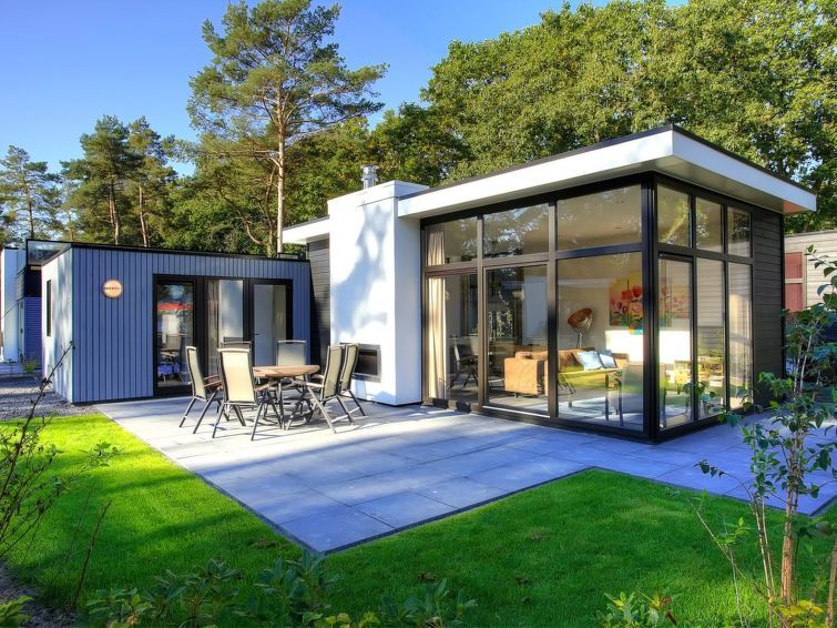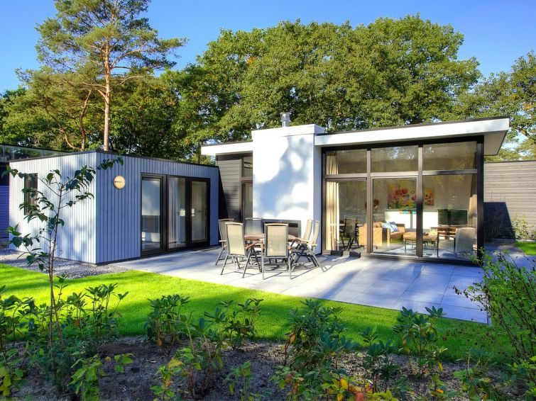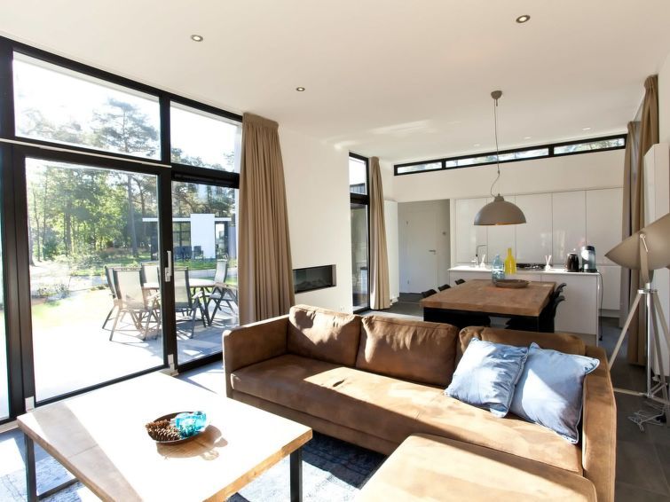 "L-Cube 4", 3-room bungalow. Spacious and bright, practical furnishings: living/dining room with open-hearth fireplace, dining table and TV. Exit to the terrace. 2 rooms, each room with 2 beds. Kitchenette (4 hot plates, dishwasher, kettle, electric coffee machine, combination microwave).