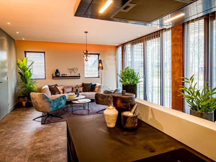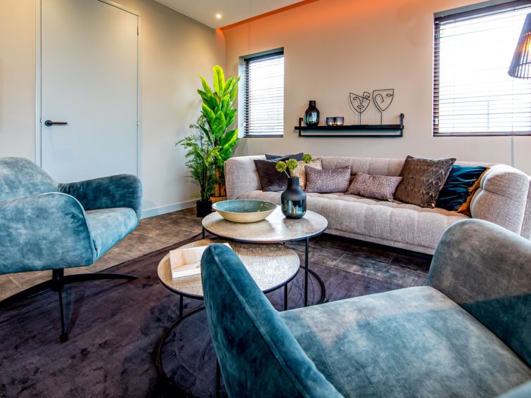 "Modus 4", 3-room bungalow. Bright, practical and beautiful furnishings: living/dining room with dining table and TV. Exit to the terrace. 1 room with 2 beds. 1 room with 1 double bed. Kitchenette (4 hot plates, dishwasher, kettle, electric coffee machine, combination microwave). Shower, sep.