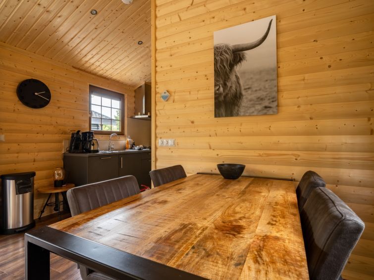 "Boekhorst 4", 3-room chalet. Comfortable furnishings: living/dining room with dining table and flat screen. Exit to the terrace. 2 double bedrooms, each room with 2 beds. Open kitchen (4 hot plates, dishwasher, electric coffee machine, Capsules for coffee machine (Nespresso) extra, combination microwave).