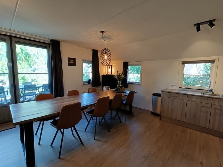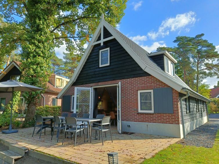 "Geheim van Otterlo 8", 5-room house on 2 levels. Spacious, modern furnishings: living/dining room with dining table and TV. 2 rooms, each room with 2 beds. Open kitchen (dishwasher, kettle, electric coffee machine, combination microwave). Shower, sep. WC. Heating. Upper floor: 1 room with 2 beds and shower/WC.