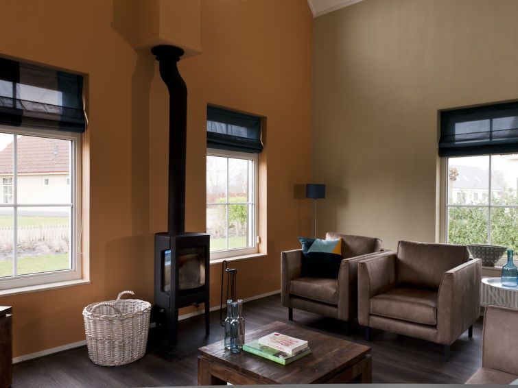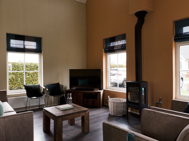 "Heerd Wellness de Luxe", 4-room house 120 m2. Comfortable furnishings: living/dining room with dining table, TV and wood-burning stove. Mezzanine. 1 room with 2 beds. Kitchen (dishwasher, Gas stove, 4 gas rings, electric coffee machine, combination microwave). Exit to the terrace, to the veranda.