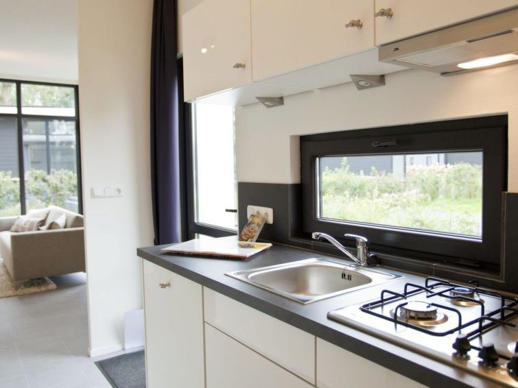 "Cube la Mer 4", 3-room bungalow 55 m2. Beautiful and modern furnishings: living/dining room with dining table and TV. Exit to the terrace. 1 room with 1 double bed. 1 room with 2 beds. Open kitchen (dishwasher, kettle, freezer, combination microwave). Shower/WC. Electric heating.