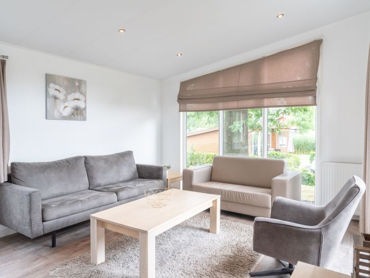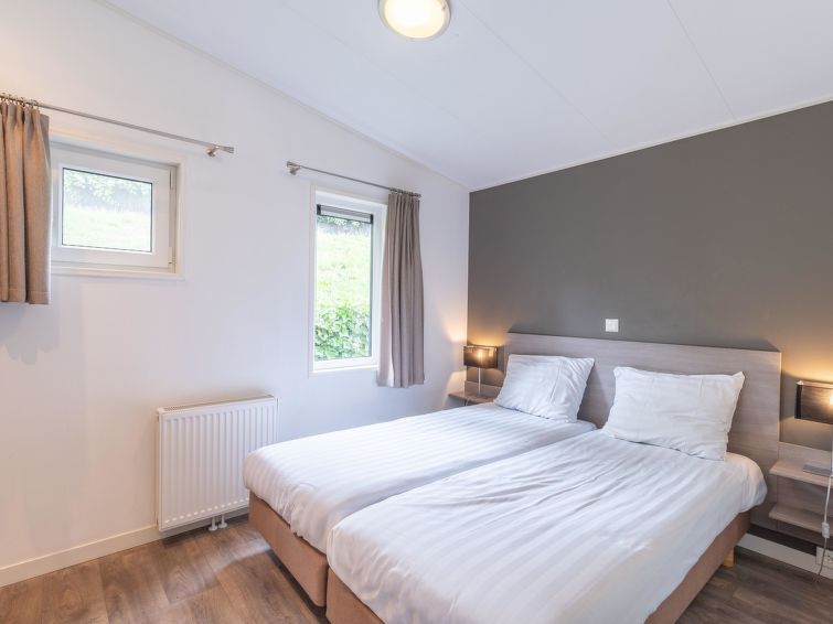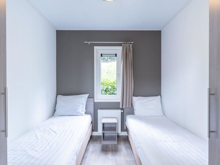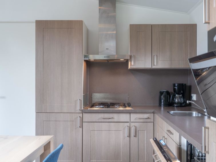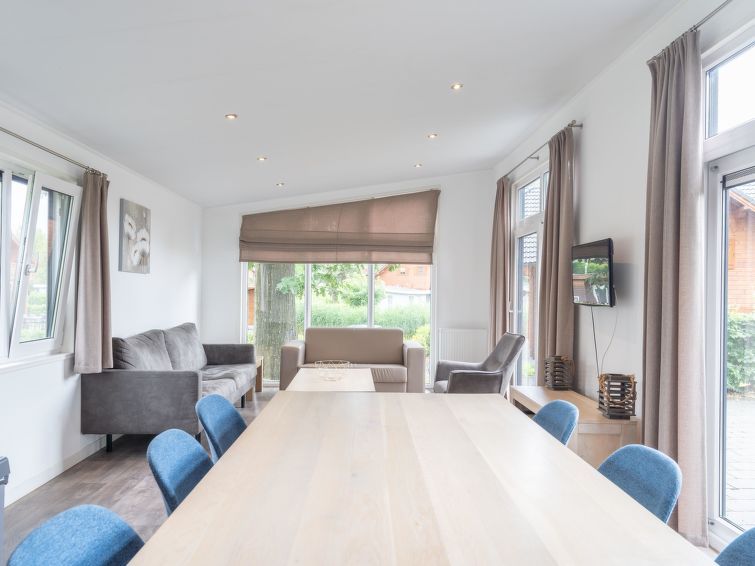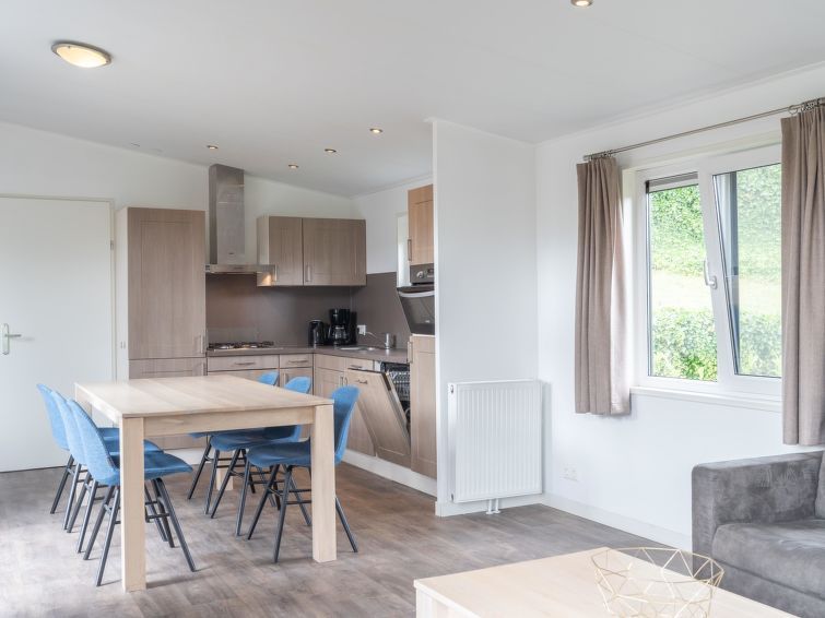 "L-Pavilion 6", 4-room bungalow 75 m2. Comfortable furnishings: living room with TV. Exit to the terrace. 1 room with 1 double bed. 1 room with 2 sleeping facilities. 1 room with 2 beds. Open kitchen (dishwasher, Gas stove, 4 gas rings, kettle, microwave, electric coffee machine) with dining table.