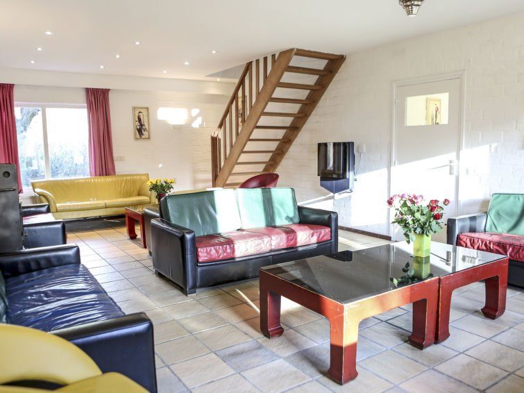 "Geschakelde 25 persoons", 13-room house 210 m2 on 2 levels. Practical furnishings: entrance hall. Living/dining room with dining table, TV and wood-burning stove. Exit to the terrace. 3 double bedrooms, each room with 2 beds. Open kitchen (8 hot plates, dishwasher, kettle, electric coffee machine, combination microwave).