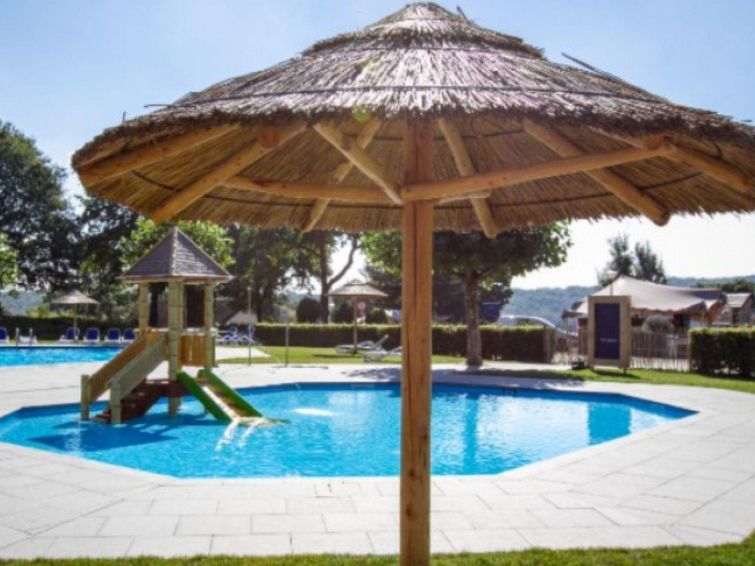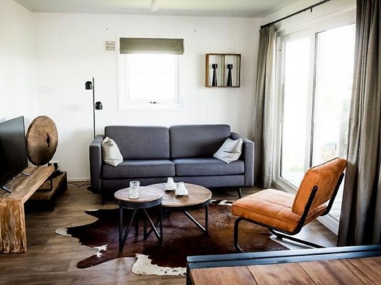 "Grandeur Panorama", 3-room bungalow on the ground floor. Comfortable furnishings: open living/dining room with flat screen. Exit to the veranda. 1 double bedroom with 1 x 2 bunk beds. 1 double bedroom with 1 double bed. Open kitchen (dishwasher, kettle, microwave, electric coffee machine) with dining table.