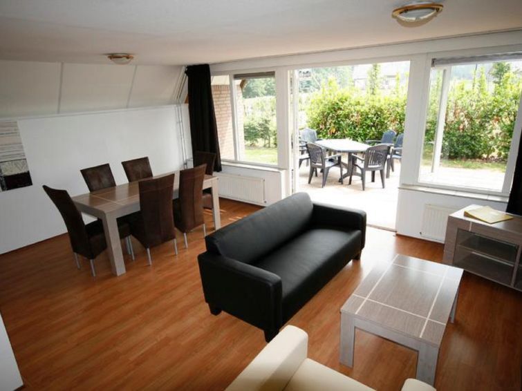 "Aldenborgh 6", 4-room bungalow 75 m2 on 2 levels. Comfortable furnishings: entrance hall with separate WC. Living/dining room with dining table and flat screen. Exit to the terrace. 1 double bedroom with 2 beds. Open kitchen (4 hot plates, dishwasher, microwave, electric coffee machine).