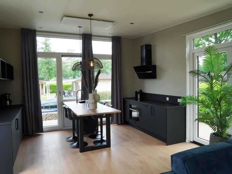 "Just nature 4", 3-room bungalow 52 m2. Bright, beautiful and tasteful furnishings: living/dining room with TV. Exit to the terrace. 2 rooms, each room with 2 beds. Open kitchen (dishwasher, 4 induction hot plates, kettle, electric coffee machine, combination microwave). Shower, sep.