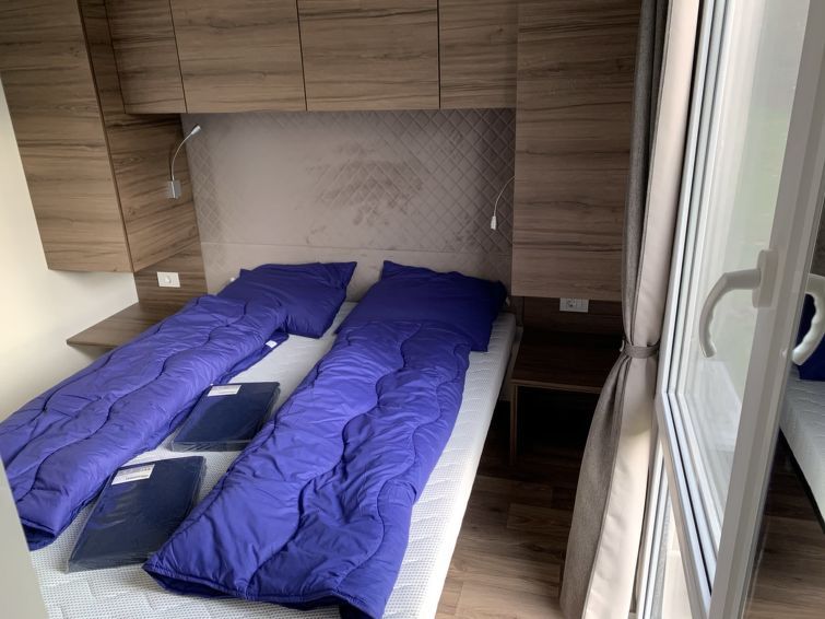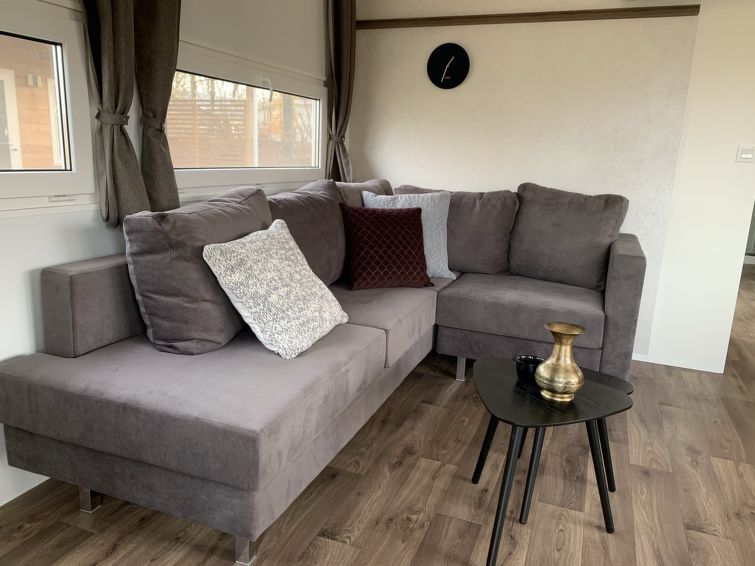 "Cottage 4", 3-room chalet on the ground floor. Comfortable furnishings: living/dining room with 1 sofabed and flat screen. Exit to the terrace. 1 double bedroom with 2 beds. 1 double bedroom with 1 x 2 bunk beds. Open kitchen (dishwasher, 1 induction hot plates, microwave, freezer, electric coffee machine, Capsules for coffee machine (Nespresso) extra) with dining table and dining nook.