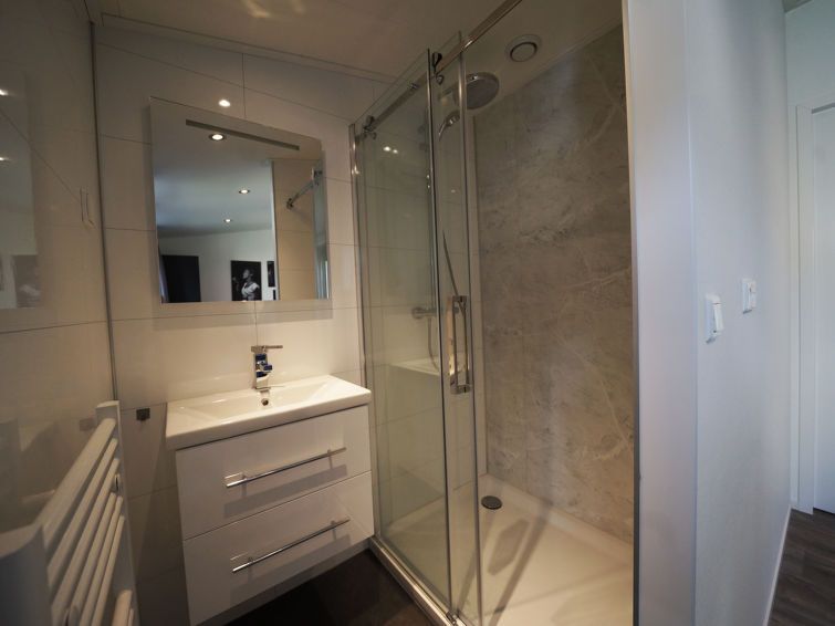 "Cube Split 6", 4-room chalet on the ground floor. Comfortable furnishings: living/dining room with 1 sofabed and flat screen. Exit to the terrace. 1 double bedroom with 2 beds. 1 double bedroom with 2 beds. 1 double bedroom with 2 beds. Open kitchen (dishwasher, 1 induction hot plates, microwave, electric coffee machine, Capsules for coffee machine (Nespresso) extra) with dining table and dining nook.