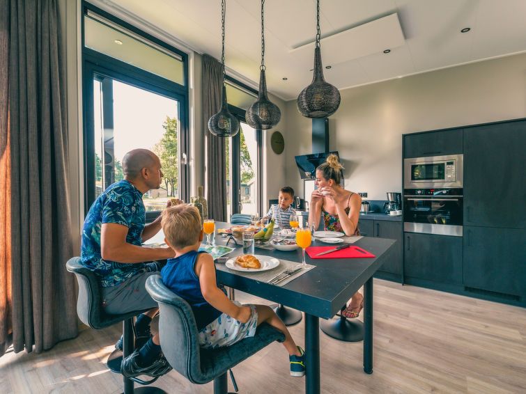 "Just Nature 4", 3-room chalet on the ground floor. Comfortable furnishings: living/dining room with 1 sofabed and flat screen. Exit to the terrace. 1 double bedroom with 2 beds. 1 double bedroom with 2 beds. Open kitchen (dishwasher, 1 induction hot plates, microwave, electric coffee machine, Capsules for coffee machine (Nespresso) extra) with dining table and dining nook.