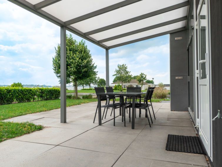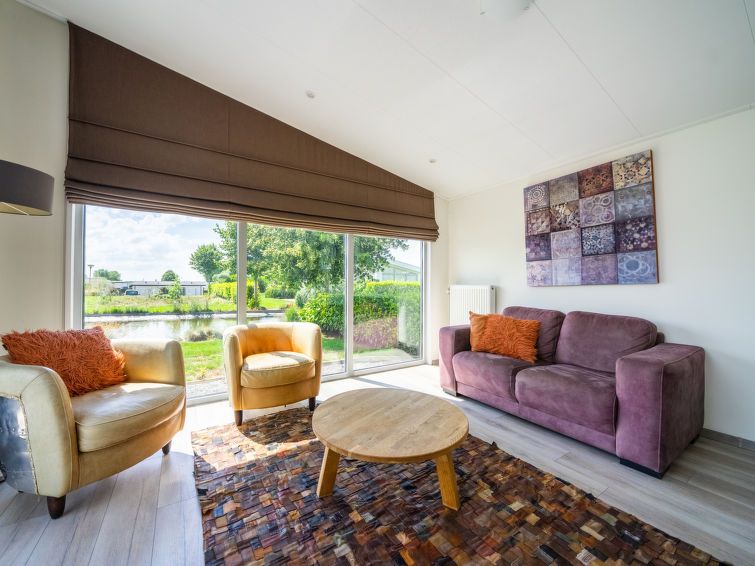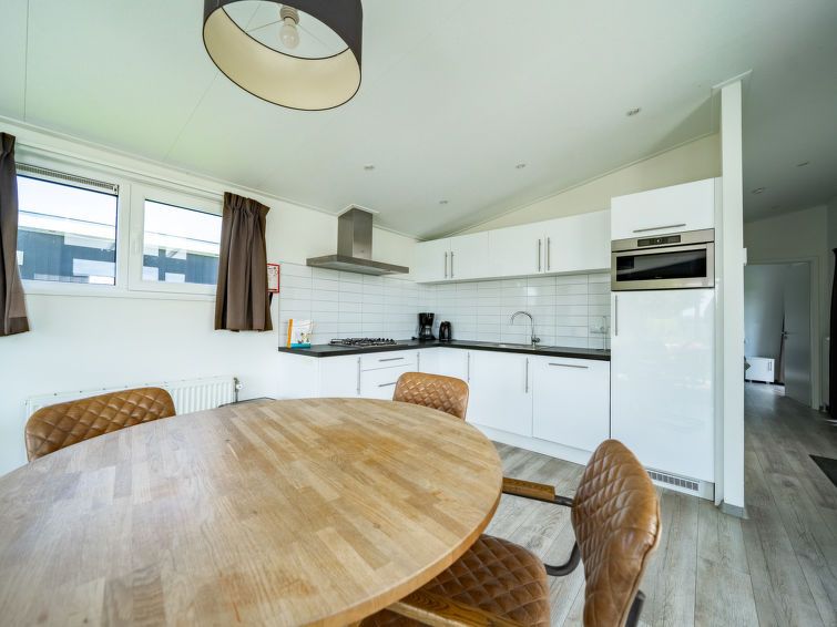 "Pavilion 4", 3-room chalet 50 m2. Comfortable furnishings: living/dining room with dining table and flat screen. Exit to the terrace. 2 double bedrooms, each room with 2 beds. Open kitchen (4 hot plates, dishwasher, kettle, electric coffee machine, combination microwave). Shower/WC.