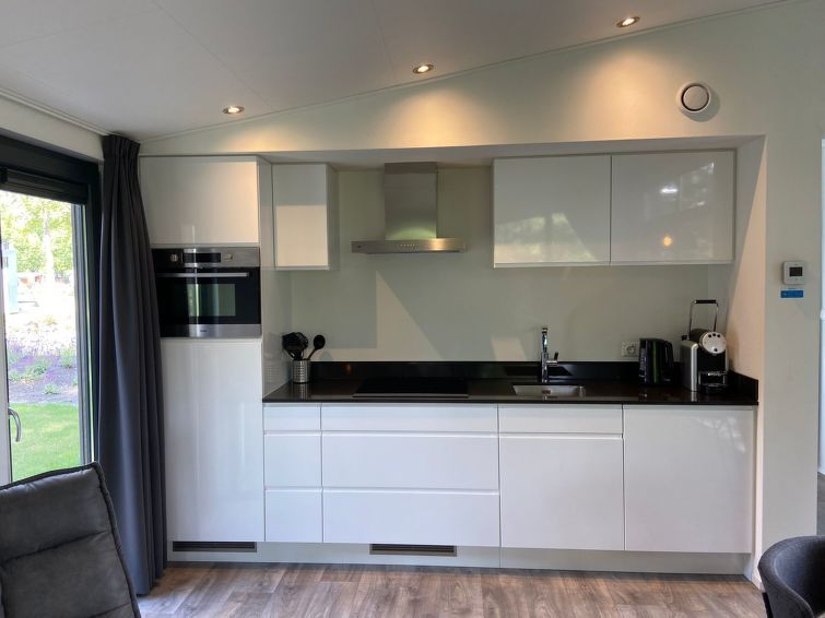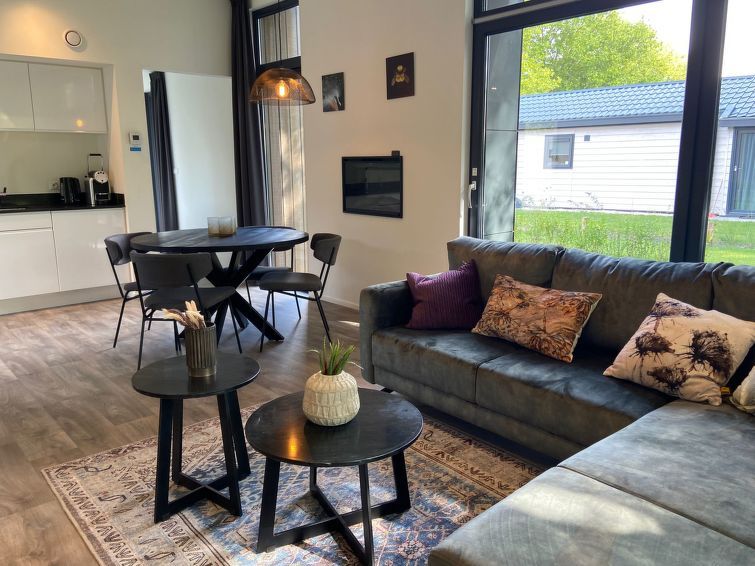 "Pavilion Maximaal 4", 3-room chalet 70 m2, on the ground floor. Comfortable furnishings: living/dining room with 1 sofabed and flat screen. Exit to the terrace. 1 double bedroom with 2 beds. 1 double bedroom with 2 beds. Open kitchen (dishwasher, 1 induction hot plates, microwave, electric coffee machine, Capsules for coffee machine (Nespresso) extra) with dining nook.