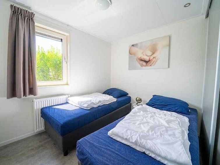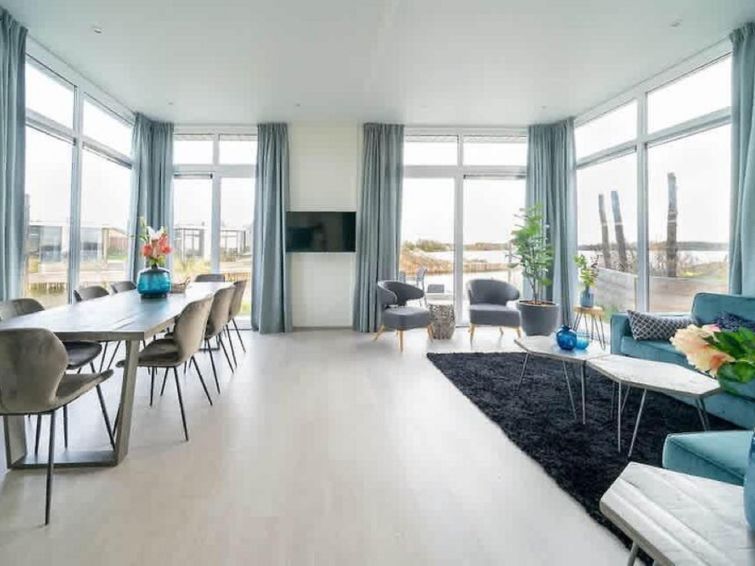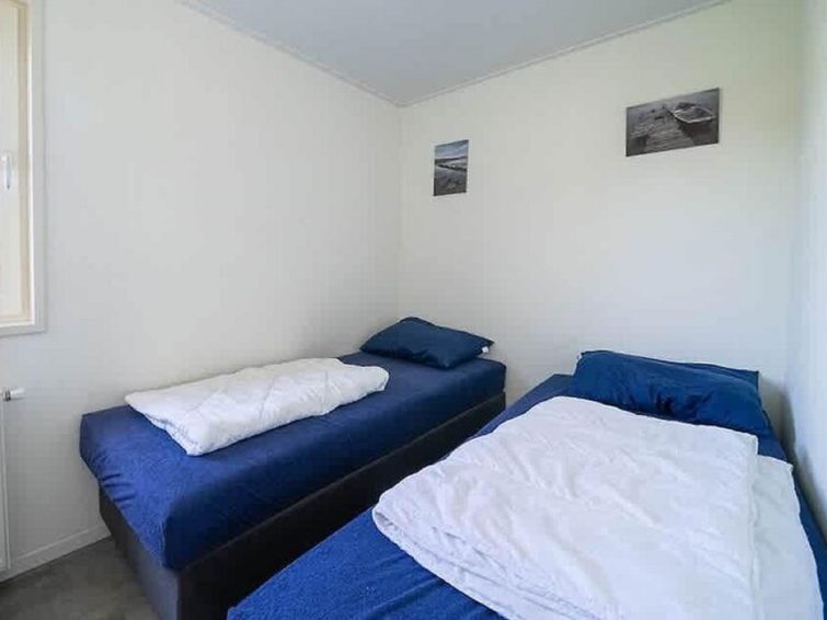 "Pavilion Waterfront 8", 5-room bungalow 80 m2. Bright, modern and cosy furnishings: living/dining room with dining table and TV. Exit to the terrace. 3 rooms, each room with 2 beds. 1 room with 1 x 2 bunk beds. Kitchenette (oven, dishwasher, kettle, microwave, electric coffee machine).