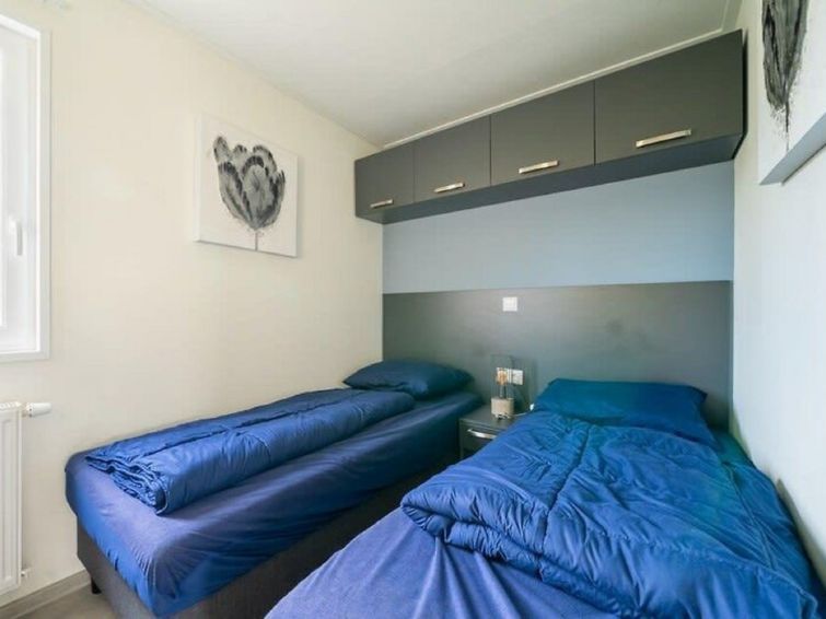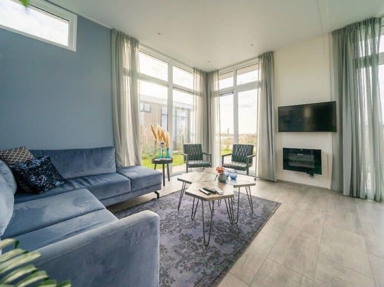 "Pavilion Waterfront 6", 4-room bungalow 70 m2. Bright, modern and cosy furnishings: living/dining room with dining table and TV. Exit to the terrace. 3 rooms, each room with 2 beds. Kitchenette (4 hot plates, dishwasher, kettle, microwave, electric coffee machine, Capsules for coffee machine (Nespresso) extra).