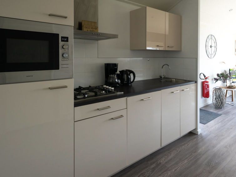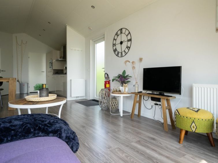 "Pavilion Waterfront 4", 3-room chalet 50 m2. Comfortable furnishings: living/dining room with dining table and flat screen. Exit to the terrace. 2 double bedrooms, each room with 2 beds. Open kitchen (4 hot plates, dishwasher, kettle, electric coffee machine, combination microwave).