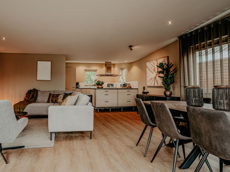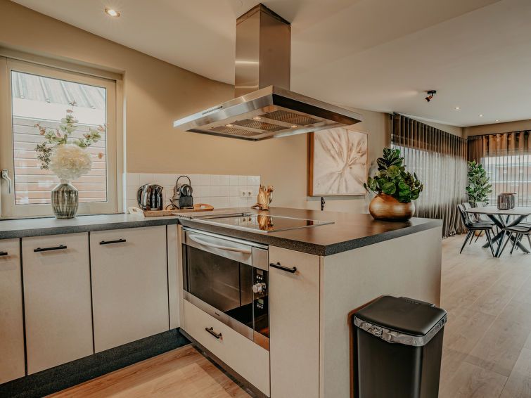 "De Woude", 4-room house 110 m2 on 2 levels. Practical furnishings: entrance hall with separate WC. Open living/dining room with dining table, TV, radio, CD-player and DVD. Large, open kitchen (4 hot plates, dishwasher, kettle, electric coffee machine, combination microwave). Heating.