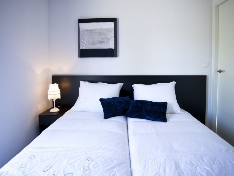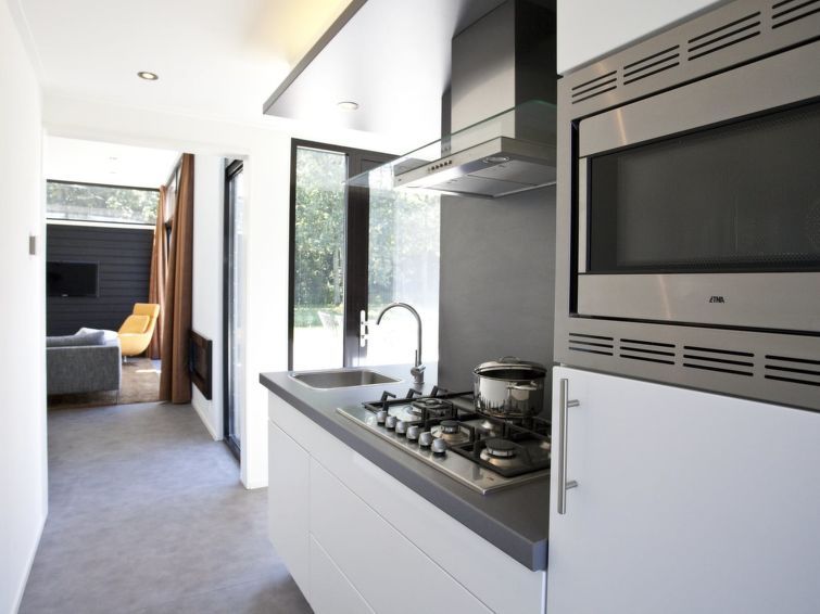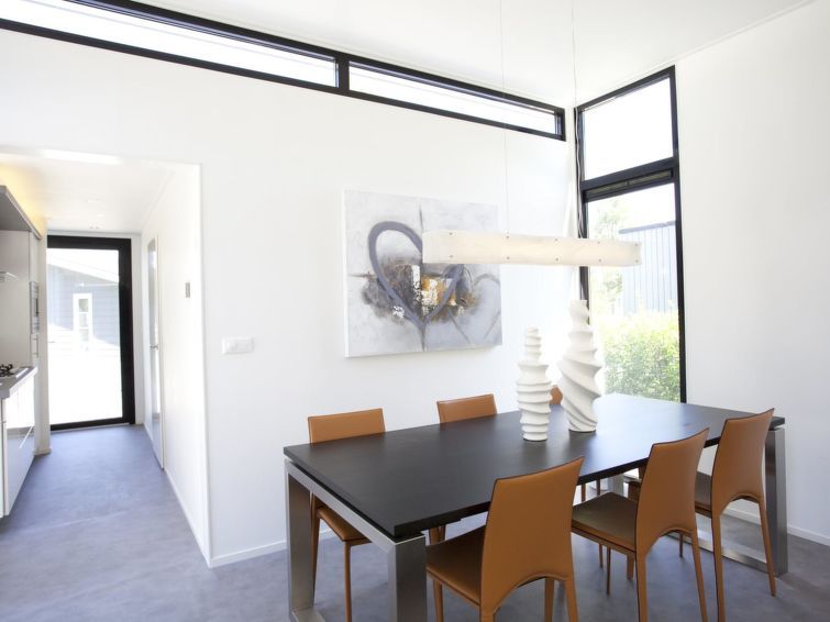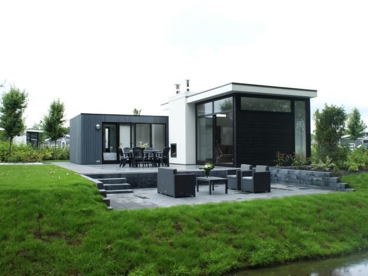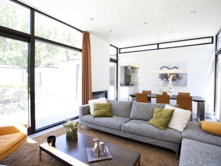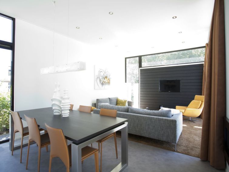 "L-Cube 6", 4-room bungalow 65 m2. Spacious and bright, modern furnishings: living/dining room with open-hearth fireplace, dining table and TV. Exit to the terrace. 1 room with 1 double bed. 2 rooms, each room with 2 beds. Kitchenette (dishwasher, kettle, freezer, electric coffee machine, combination microwave).