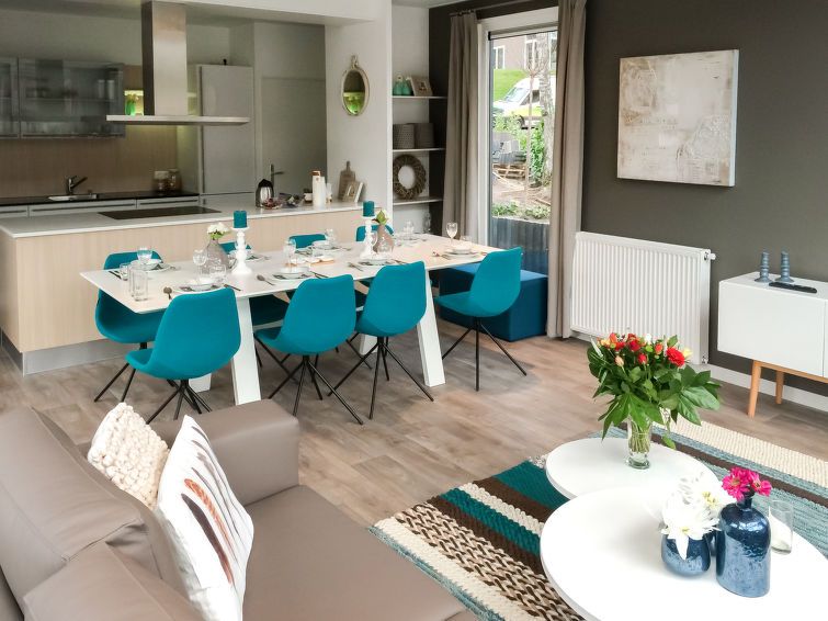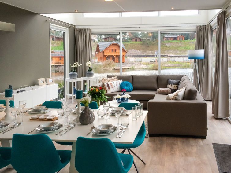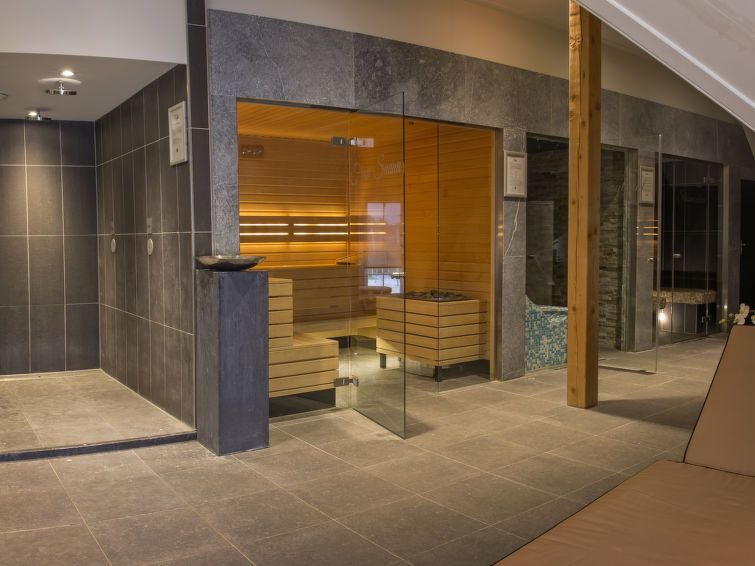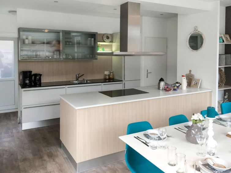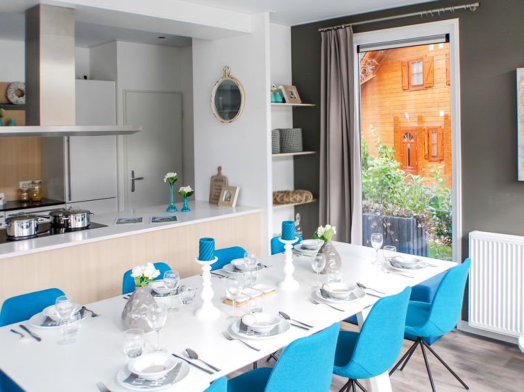 "Pavilion l'etage 8", 5-room chalet 150 m2 on 2 levels. Comfortable furnishings: entrance hall with separate WC. Living/dining room with dining table and flat screen. Exit to the terrace. 1 double bedroom with 2 beds. Open kitchen (dishwasher, Gas stove, electric coffee machine, combination microwave).