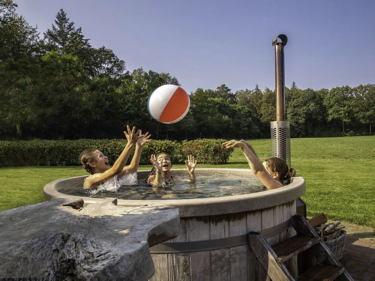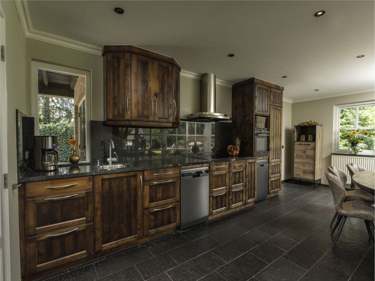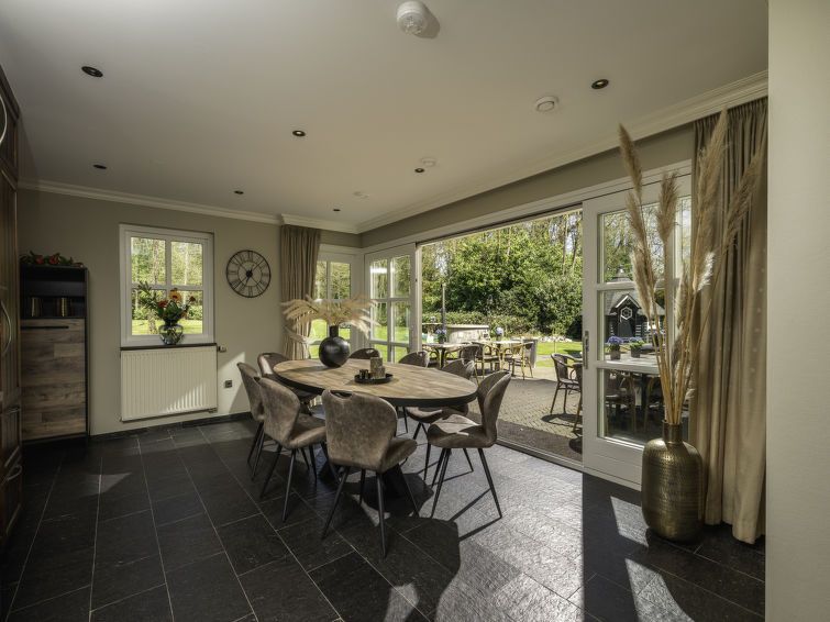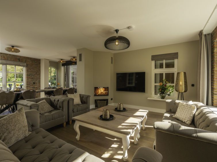 "Het Landhuis", 10-room villa 250 m2 on 2 levels. Comfortable furnishings: entrance hall with separate WC. Living/dining room with dining table and TV. 4 rooms, each room with 2 beds. Kitchen (oven, dishwasher, 4 induction hot plates, kettle, microwave, electric coffee machine). 3 showers/WC, bath/shower/WC.