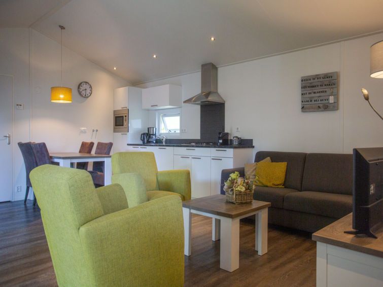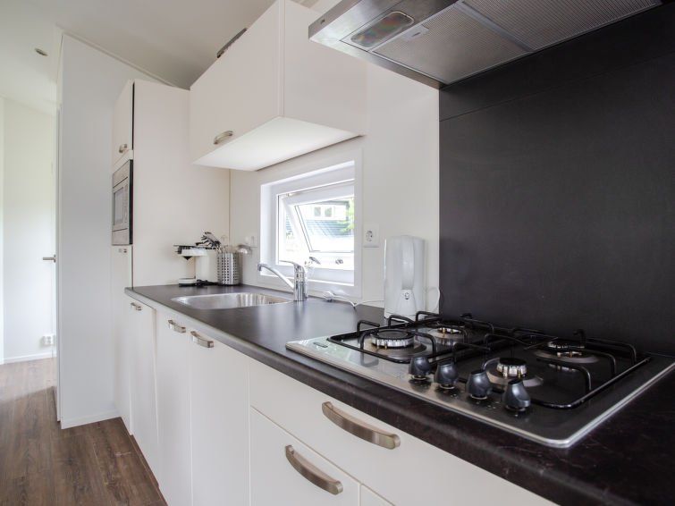 "Heuvelrug Cottage 4 persoons", 3-room cottage 50 m2. Comfortable furnishings: living/dining room with dining table, flat screen and CD-player. Exit to the terrace. 1 large room with 1 double bed. 1 room with 2 beds. Open kitchen (4 hot plates, dishwasher, microwave, freezer, electric coffee machine).