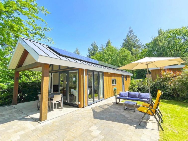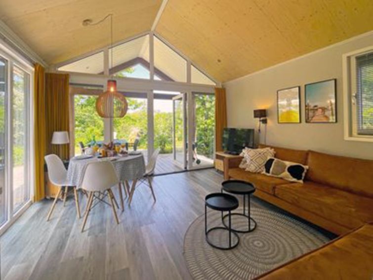 "Eco", 3-room cottage 50 m2. Comfortable furnishings: living/dining room with dining table and flat screen. Exit to the terrace. 1 double bedroom with 2 beds. 1 double bedroom with 1 double bed. Open kitchen (4 hot plates, dishwasher, kettle, electric coffee machine, combination microwave).
